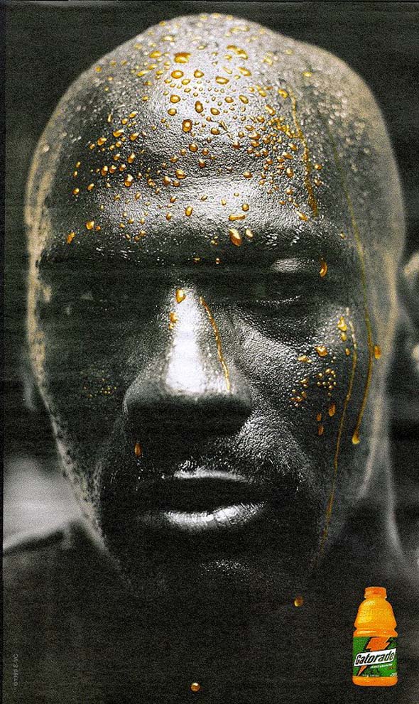 This advert from Gatorade Sport was also largely looked at as an inspiration for our 50/50 adverts. However, whilst we decided that we wanted to more colour in order to make the background more attractive. We took great inspiration from this advert because it allowed us to see how colour can change the persons perspective on what is in front of them. Whilst they have hardly advertised the drink that they are actually producing, anyone who sees this advert once, will forever recognise this as the Gatorade ad. This is because of the fact that the ad is so different and whilst being in black and white it still stands out so much due to the vibrant orange. From this advert, we identified that for our own advert using colouring to contrast the black and white, and then link to the half half idea of our video, was the most effective way we could take this idea and implant it into our own advertisement.As the the main interest in our advertisement is the can, we can help it look even more refreshing and desirable due to the way we ourselves use black and white to contrast colouring.